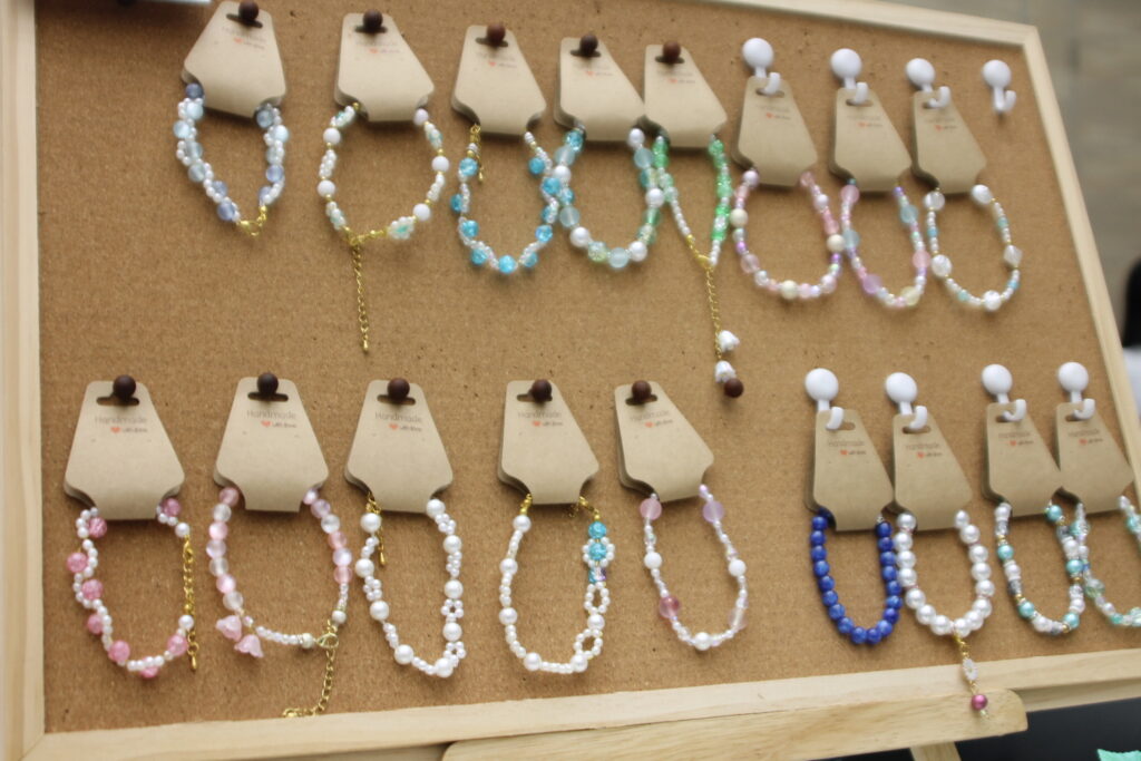 ビーズやガラス瓶に思い思いの彩りを込めた作品づくりは、子どもから大人まで大人気で、完成品を手にしたお客さんの笑顔があふれていました。