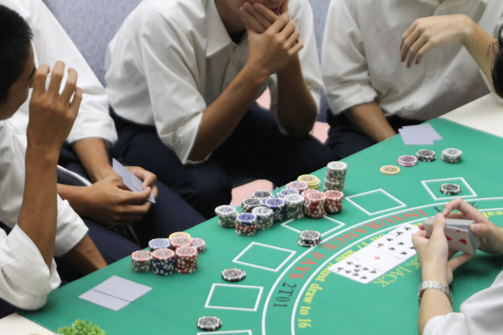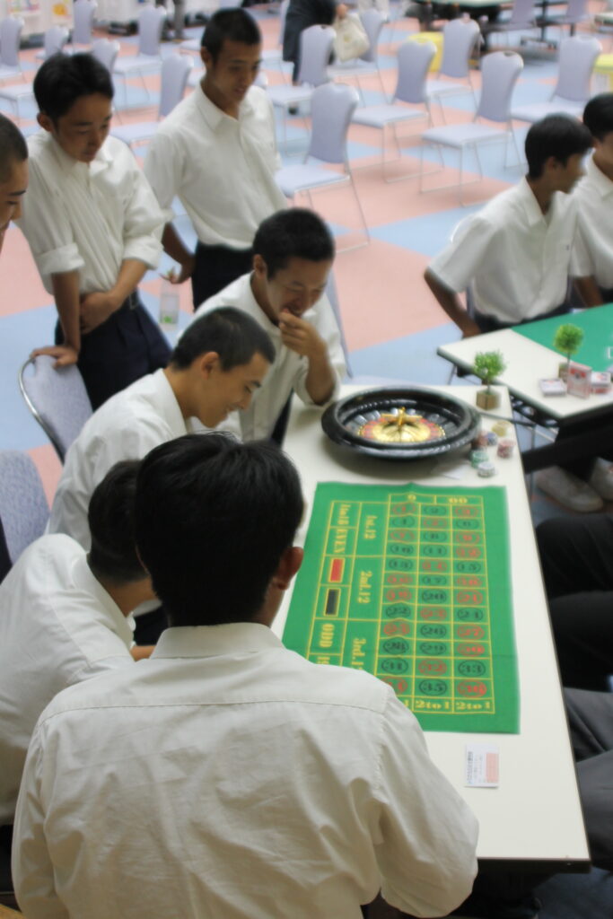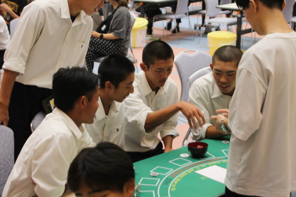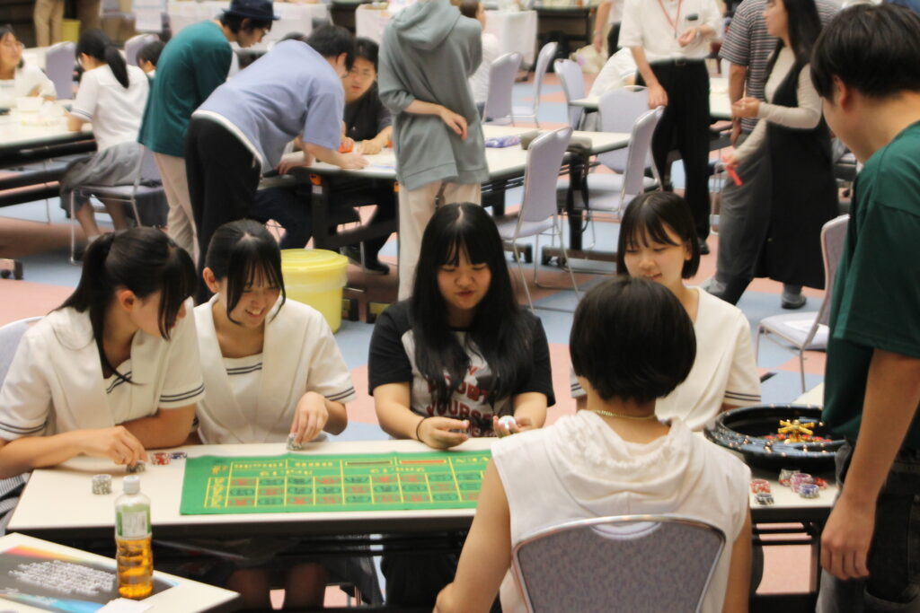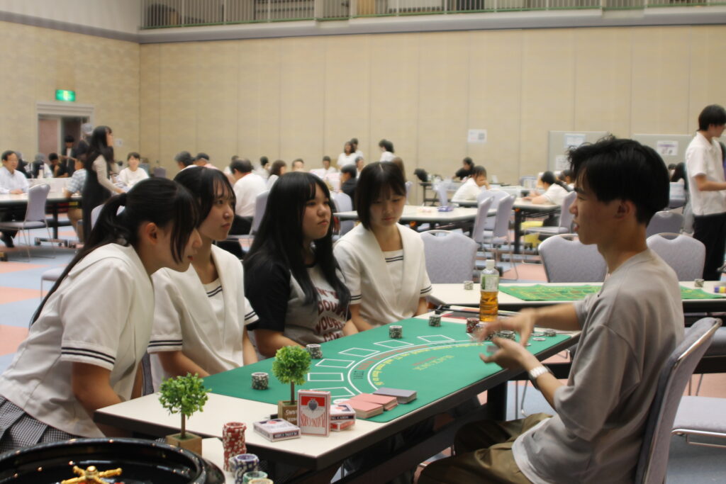 普段は映画やテレビでしか見たことがない“カジノの世界”を、学生たちが手づくりで再現しました。